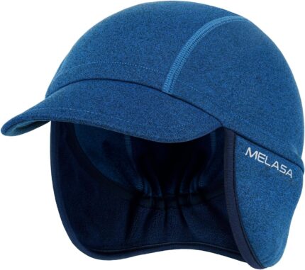 MELASA Winter Fleece Cycling Cap, Ear Warmers Skull Cap Helmet Liner with Sun Visor, Bike Hat Running Beanie for Men Women
