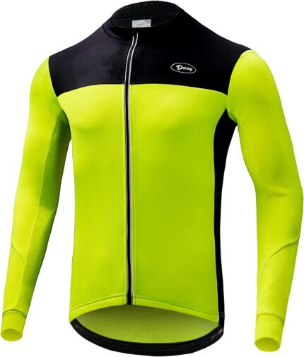 Dooy Men’s Cycling Bike Jersey Thermal Biking Shirt Long Sleeve Bicycle Shirts with Full Zipper and Rear Pockets
