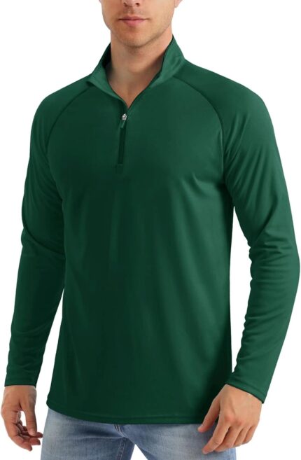MAGCOMSEN Men’s Long Sleeve Sun Shirts UPF 50+ Tees 1/4 Zip Up Fishing Running Rash Guard T-Shirts Outdoor Shirt