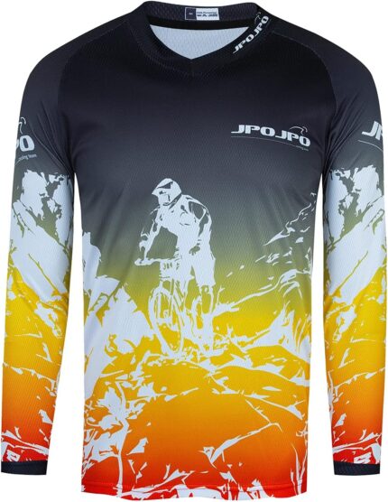 bpbtti Men’s Cycling Jersey Long Sleeve MTB Bike Biking Shirts with Half Front Zipper & 3-Rear Pockets