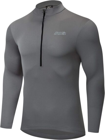 Bikewa Men’s Cycling Jersey with 3+1 Rear Zipper Pockets Long Sleeve Moisture Wicking UPF 50+ Half Zip Riding Bike Shirts