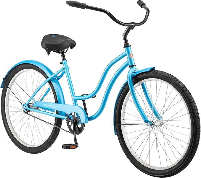 BEACH CRUISER BIKE: High style is just a pedal away with the Mikko by Schwinn. With 26-inch wheels, this vintage inspired cruiser bike is perfect for riders 5’0″ – 5’9″ tall. Enjoy a relaxed ride around the city, through the park, or at the beach.